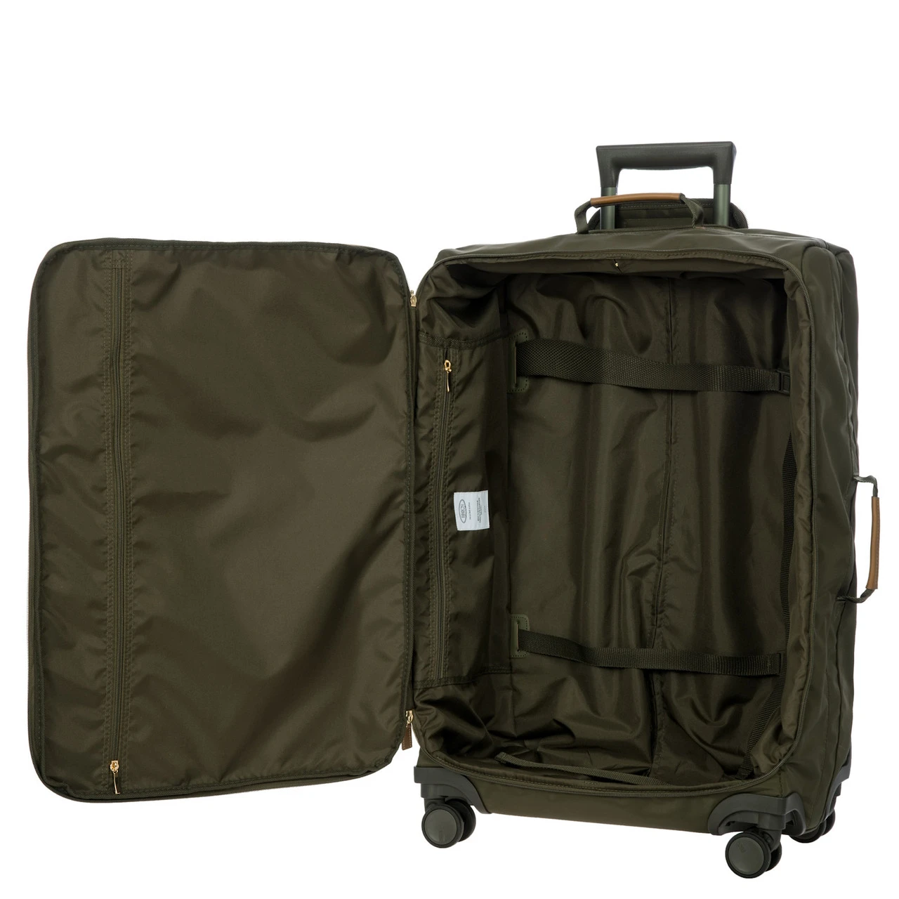 The latest size added to the Bric’s X-Travel collection, this 71cm Medium suitcase offers that extra bit of space compared to the 65cm, taking the litre capacity from 53L to 72L, perfect for a 7-10 day break. The classic style of the X-Travel range meets functionality, with a roomy interior and zippered pocket. The silent rolling, recessed wheels really optimise space inside this iconic piece of luggage.